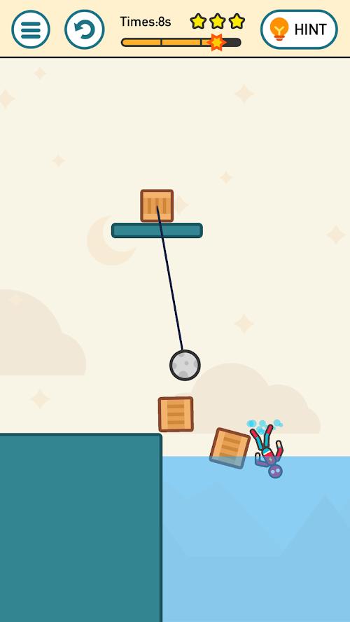 《爆燃火柴人》是一款创意十足的休闲闯关游戏,玩家需要运用智慧和策略帮助火柴人脱离险境。游戏采用独特的物理引擎设计,每个关卡都设置了不同的障碍和机关,玩家要通过消除红色方块、搭建桥梁或触发机关等方式,为火柴人开辟一条通往水中的安全路径。游戏设有丰富多样的关卡场景,从简单的平台跳跃到复杂的机关解谜,难度循序渐进。随着关卡推进,玩家将遇到更多新颖的挑战元素,如移动平台、弹簧装置等,让游戏体验始终保持新鲜感。紧张刺激的倒计时机制更增添了游戏的挑战性。