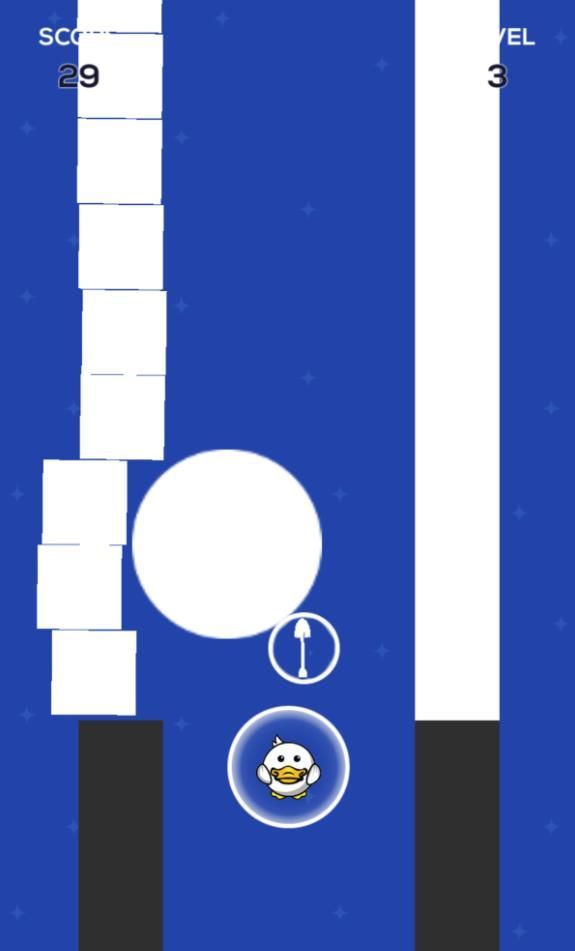 2、护盾不仅能防御还能主动出击,玩家需要把握时机撞击障碍物,为小鸭子开辟安全通道。游戏设计了多种特殊障碍物,需要玩家运用不同策略应对,大大提升了游戏的可玩性。
