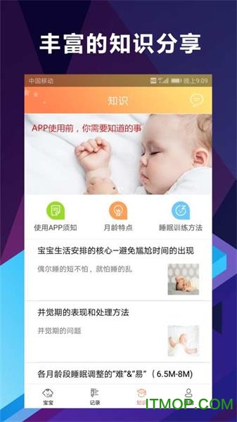 功能三,丰富的知识分享:根据宝宝月龄智能推送适龄的睡眠知识,包括睡眠信号识别、入睡技巧等内容。配套的公众号还会定期更新实操性强的育儿干货,如应对睡眠倒退、分离焦虑等常见问题的解决方案。