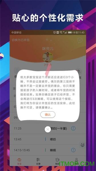 腱子肉阿兜:这款app彻底改变了我们家的育儿生活!之前宝宝总是要抱睡,夜里频繁醒来。使用app推荐的睡眠训练方法后,两周就实现了自主入睡,夜醒次数明显减少。智能提醒功能特别实用,新手妈妈再也不用担心错过最佳哄睡时机了!