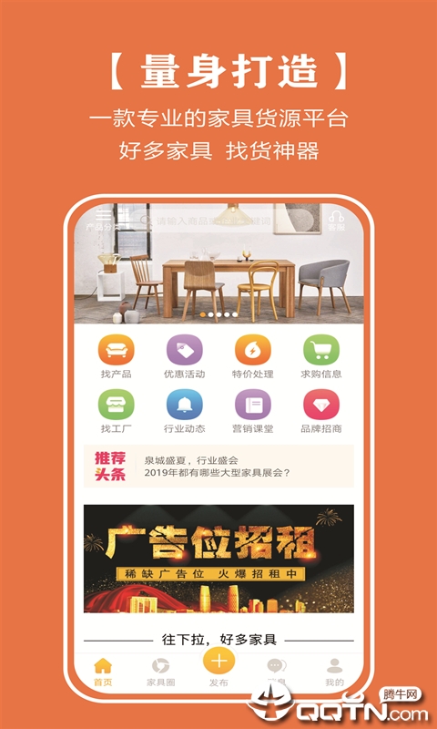 好多家具APP是一款专注于家具行业的B2B垂直电商平台,汇聚了全国各地的优质家具厂商资源。通过这款应用,经销商可以轻松浏览海量家具产品,获取最新行业资讯和特价优惠信息。平台不仅提供丰富的产品展示功能,还整合了找工厂、求购发布、品牌招商等实用工具,帮助用户高效完成采购需求。同时,APP还设有行业课堂、展会信息等增值服务,全方位满足家具从业者的专业需求。