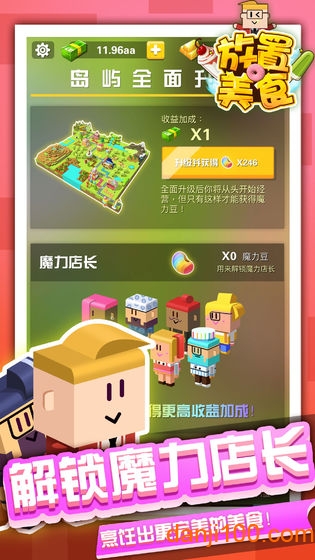2、独特的荒岛美食街设定汇集全球美味,配合拥有魔力的店长角色,在解锁隐藏菜谱的过程中体验探索乐趣,每次开业都能带来新鲜感。