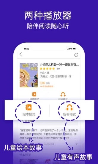 1、智能模式切换:提供家长管理界面与儿童阅读界面的自由切换,支持自动识别有声/图文内容,可根据需求选择连续播放或手动翻页模式,满足不同场景下的使用需求。