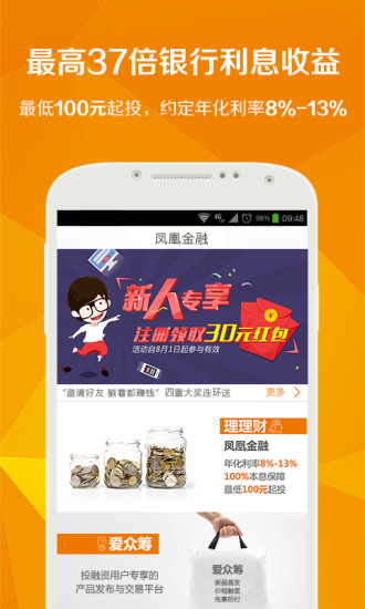 凤凰金融理财版块以低门槛、高收益、强保障为特色,100元即可起投,约定年化收益率高达8%-13%。产品期限灵活多样,从1个月到36个月不等,满足不同投资者的资金规划需求。所有产品均由顶级金融机构提供100%全额本息保障,确保投资安全无忧。平台还支持随时赎回功能,让用户在享受高收益的同时,也能保持资金的流动性。