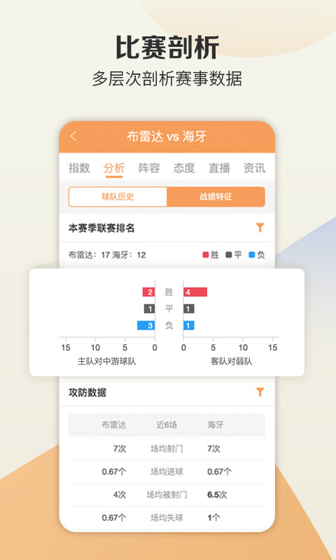 3、完善各大赛事比赛数据分类统计功能,新增多项技术指标分析,为用户提供更专业的赛事解读。