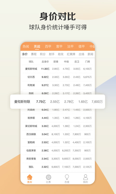 【球队、球员身价统计】基于大数据分析技术,提供全球俱乐部和球员的实时身价排行,让你轻松掌握足坛价值动态。系统会定期更新数据,确保信息的准确性和时效性。