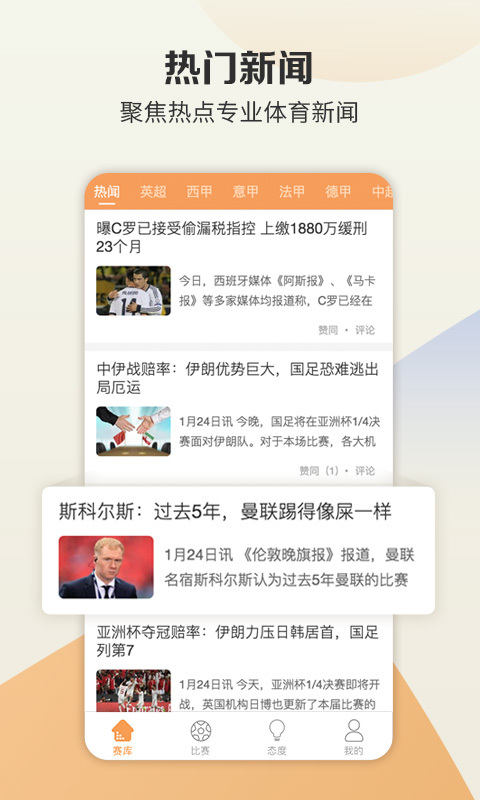 1、赛库功能全面升级,新增体坛热闻板块,让用户一键获取最新体育资讯;