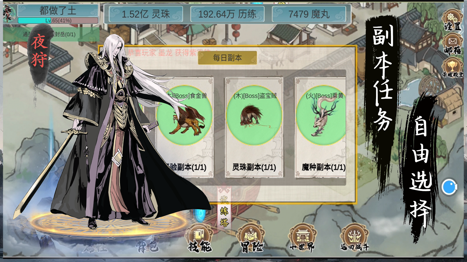 挂机升级确实方便,但后期内容有些单薄。建议增加roguelike模式的"墨境试炼",每次生成随机地图和词缀组合。现在的战斗系统在60级后基本就是数值比拼,缺乏值得钻研的深度机制。——用户"量子毛笔"