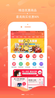 汇集了淘宝、天猫等海量商家最新折扣、优惠券的导购平台。信息更新及时,优惠券库存充足,避免用户遇到"券到用时方恨少"的尴尬情况。