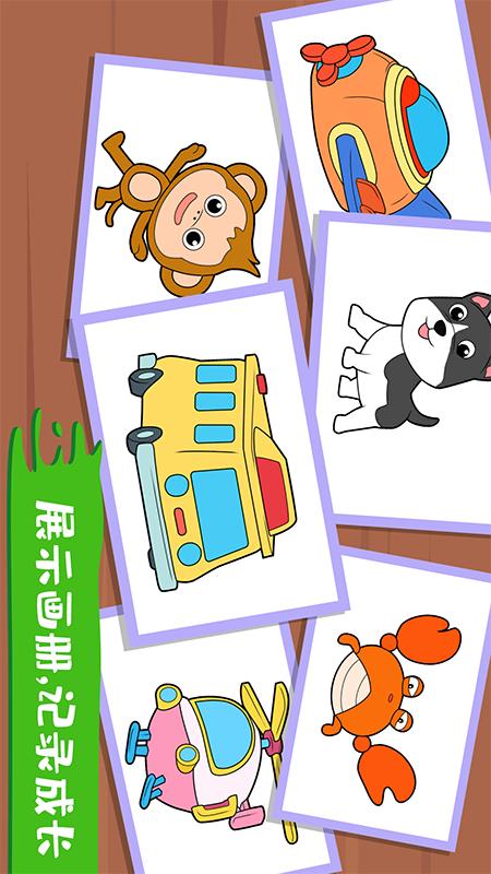 4、儿童创意画画板集涂鸦、形状画画、填色等多种功能于一体,边学边画的教学模式让艺术启蒙变得轻松有趣。游戏还内置了丰富的主题模板,涵盖动物、植物、交通工具等孩子们喜爱的内容。