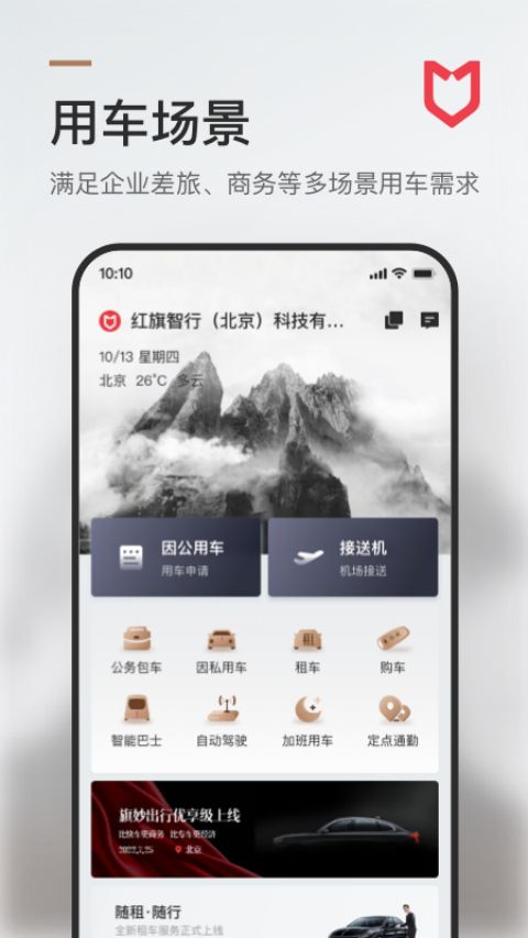 旗妙出行app是一款专注于中高端政商务出行服务的专业平台。作为新红旗品牌战略的重要组成部分,该平台以红旗H7、H5、E-HS3等高端车型为主力运营车辆,为政务接待、商务差旅、会议用车等多样化场景提供尊贵、安全、舒适的出行解决方案。平台不仅提供标准化的接送机、公务用车服务,还覆盖酒店服务、加班通勤等日常需求。依托先进的车联网和大数据技术,旗妙出行正在构建智慧交通生态体系,未来将持续推出自动驾驶等创新服务,致力于成为智慧城市建设的核心出行服务商。