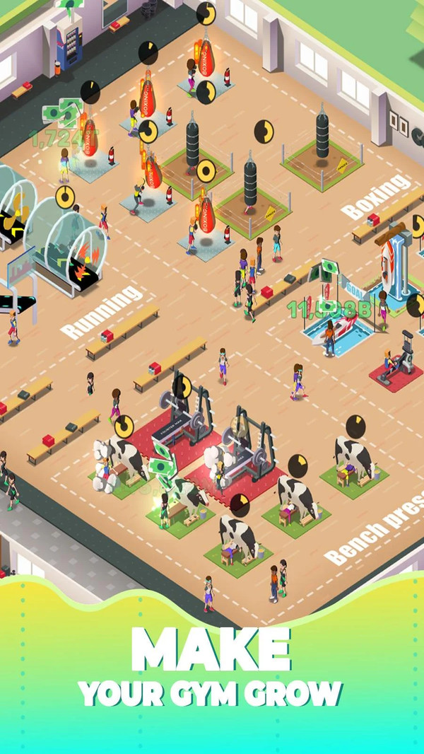 3、简单的放置玩法前来的客人根据它们的需求安排真确的运动。游戏采用智能AI系统,每位顾客都有个性化的健身目标和偏好,你需要准确判断并推荐最适合的训练方案,提升客户满意度和续费率。