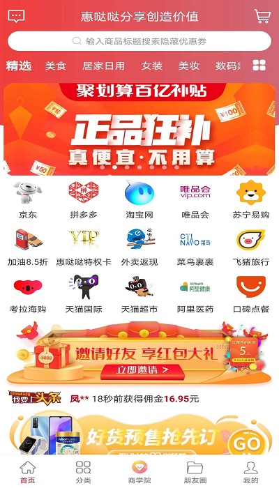 惠哒哒购物平台是一款专为网购达人打造的省钱神器,让您轻松享受购物乐趣的同时还能省下真金白银。无论是淘宝、天猫、京东还是拼多多,这里汇聚了全网最优质的大额优惠券和限时折扣,让您买的每一件商品都物超所值。新用户注册即享好礼,每日更新超值秒杀活动,更有智能搜索功能帮您快速找到心仪商品。从日常用品到时尚穿搭,从美食佳肴到数码家电,惠哒哒让您的每一分钱都花在刀刃上。现在就下载体验,开启您的省钱购物之旅吧!