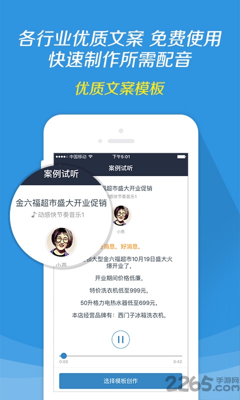 1、文案丰富:内置海量样音模板和优质文案资源,同时配备专业背景音库,可根据不同场景智能匹配最佳音效组合。