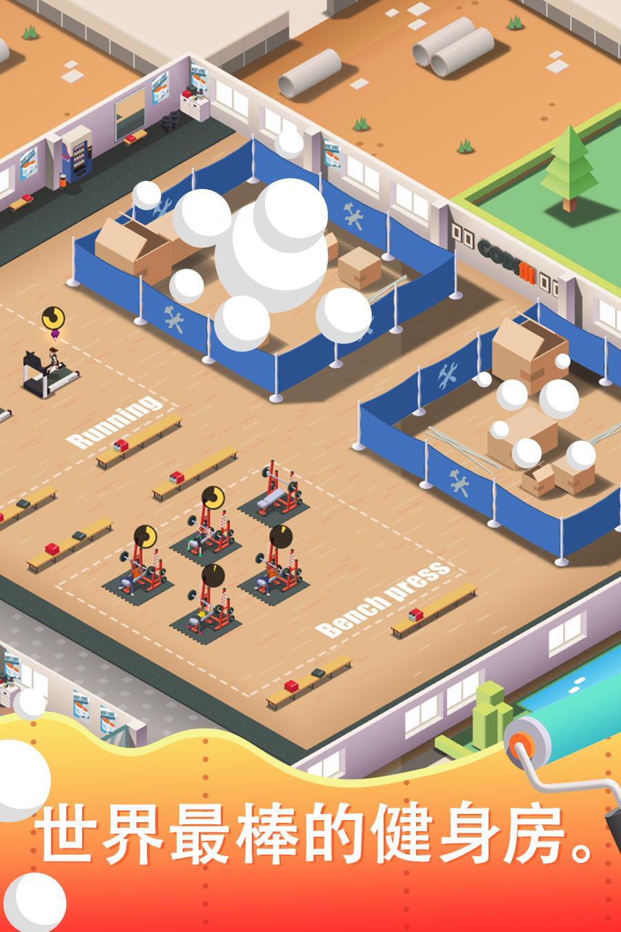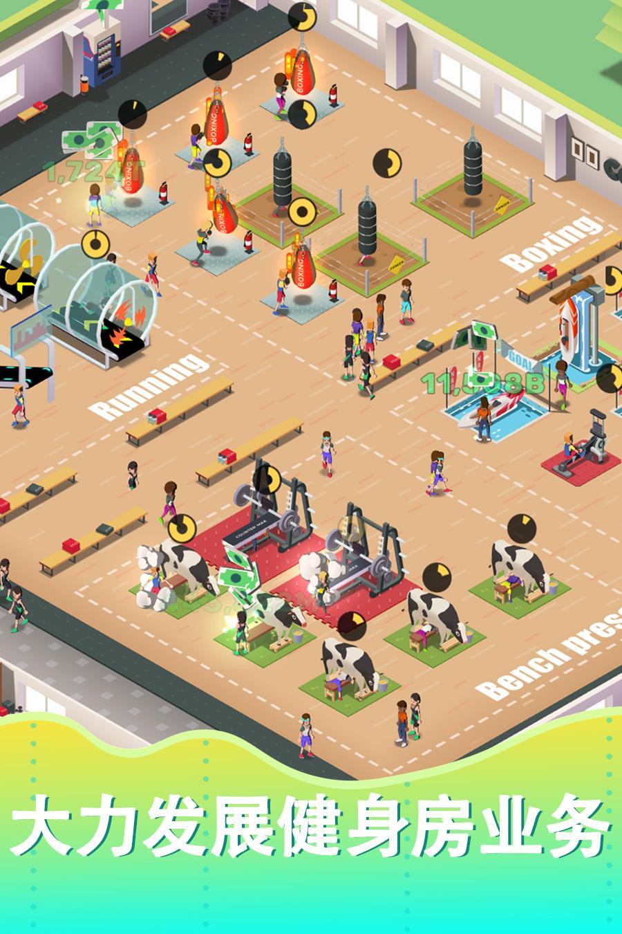 1、游戏采用清新可爱的卡通画风,让经营过程充满乐趣。通过不断升级器材设备,提升健身房档次,吸引更多高端客户前来消费。