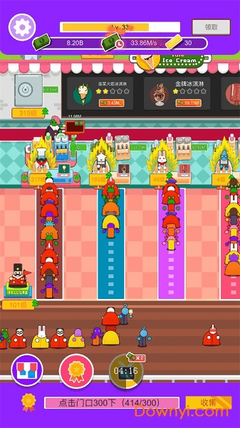 4、升级店铺,你会看到新的世界,更多的钱和冰激凌:每次店铺升级都会解锁全新场景和游戏机制,保持游戏的新鲜感。