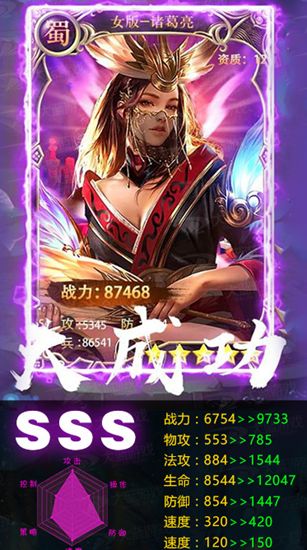 1、女性化设计严格考据历史原型,张飞保留丈八蛇矛但化身元气少女,诸葛亮羽扇变为蝴蝶结造型却依然保持智者风范。2、卡牌采用Live2D动态技术,点击武将可触发互动动作,例如赵云会表演枪舞,小乔则展示茶艺。3、战斗系统融合传统回合制与即时策略元素,布阵时需考虑兵种相克和地形加成,SSR武将可发动改变战场地形的"天命技"。4、新增"女红系统"允许玩家亲手绣制武将服饰,完成的作品可交易或赠予好友,每件都带有独特的属性加成效果。