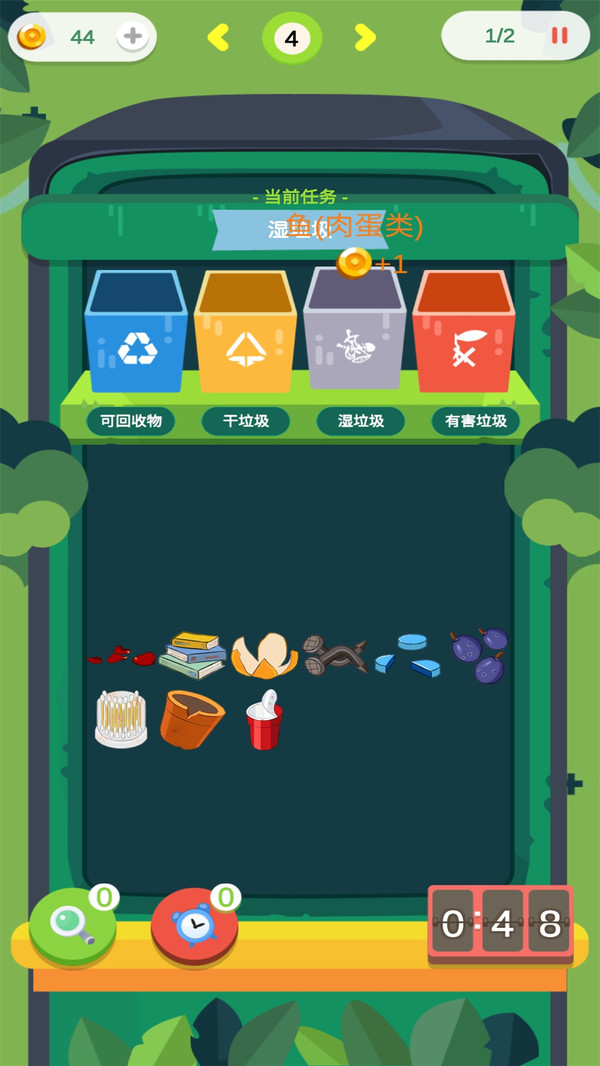 3、道具系统:游戏提供多种实用道具,如分类提示器、时间延长器等,帮助玩家更轻松地完成分类任务。4.技能系统:通过学习和升级技能,可以提升垃圾分类的速度和准确率,让你的分类能力更上一层楼。
