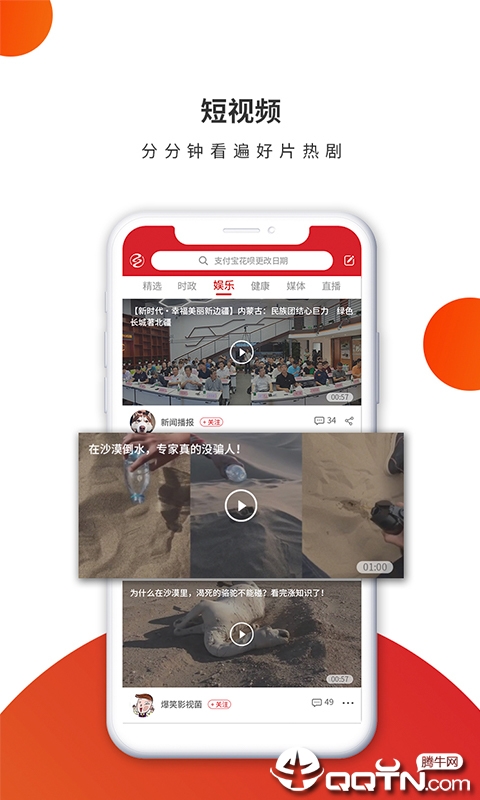 高效搜索:内置强大的搜索引擎,支持关键词、分类等多维度检索,让您快速找到心仪内容;短视频:精选优质短视频资源,涵盖新闻、娱乐、生活等多个领域,让您利用碎片时间获取丰富信息;精准推荐:基于用户行为数据分析,智能匹配最符合您兴趣的视频内容,打造专属的个性化推荐系统。此外,应用还支持离线下载、历史记录、收藏夹等实用功能,全方位提升您的使用体验。
