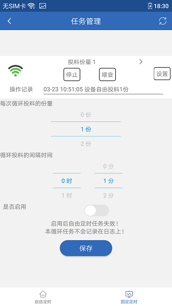 支持快速WiFi和GSM双模网络配对,确保设备稳定连接;提供一键手动投料功能,满足临时喂食需求;可同时管理多个喂鱼设备,方便多鱼缸用户使用;支持设置1到12组定时投料时间,满足不同鱼种的喂食需求;可自定义固定间隔投料模式,实现科学喂养;记录近十组操作历史,方便查看喂食情况;提供投料反馈功能,确保每次投喂都准确无误;支持在线同步设置,多设备数据实时更新。