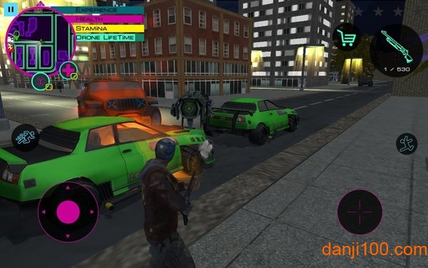 1、完全开放的未来都市地图,包含地面街道与空中航道双重探索空间,玩家可驾驶飞行器撞击建筑或使用电磁脉冲瘫痪整条街区;