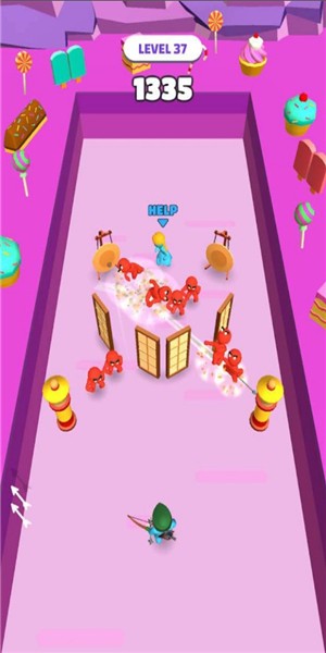 2、卡通风格的画面设计增加了游戏的乐趣,可爱的图像模拟增加了射箭的乐趣,箭矢命中时会触发夸张的特效动画,不同材质障碍物会呈现差异化的破碎效果;