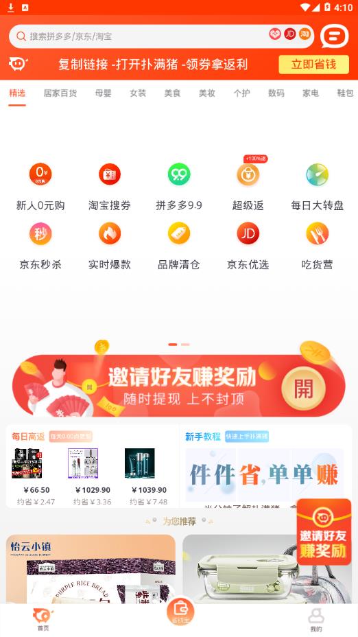 上线功能:现金红包裂变!现在用户不仅可以通过购物获得返利,还能通过邀请好友获得额外奖励。每成功邀请一位好友注册并使用APP购物,双方都能获得现金红包奖励。邀请人数越多,奖励越丰厚,最高可获得888元现金大奖。