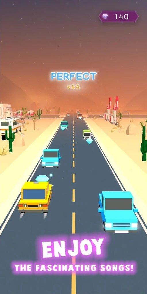 想象一下驾驶着心爱的汽车,在充满节奏感的道路上飞驰,耳边回荡着振奋人心的音乐,这种自由自在的感觉令人陶醉。游戏精心设计的驾驶体验让玩家全程都能保持放松愉悦的心情,完全沉浸在音乐与驾驶的完美结合中。道路上穿梭着五颜六色的其他车辆,为游戏增添了更多视觉乐趣。这些色彩斑斓的车辆不仅丰富了游戏画面,也让驾驶过程更加生动有趣。