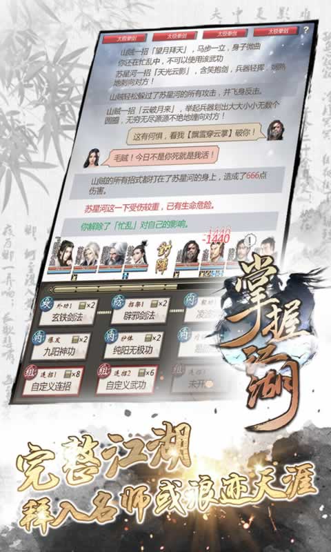《掌握江湖》是一款基于经典武侠小说世界观的策略RPG手游。玩家将从初出茅庐的江湖新人起步,通过完成各种任务、修炼武功、结交侠客,最终成长为一代武林盟主。游戏独创的多段轻功系统让你体验飞檐走壁的快感,24个正邪门派各具特色,掌门亲自传授独门绝学。丰富的RPG培养系统包含多种属性成长路线,四种不同身世的主角拥有专属剧情和属性加成。无论是喜欢PVE剧情还是PVP竞技的玩家,都能在这片广阔的武侠世界中找到属于自己的乐趣。