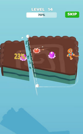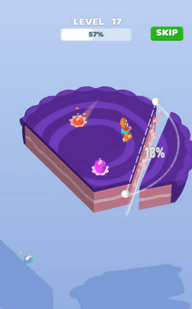 1.游戏中的蛋糕造型设计极具创意,有些蛋糕会旋转移动,有些则会被分割成特殊形状,玩家需要根据蛋糕的运动轨迹来规划最佳切割路线,极具挑战性。