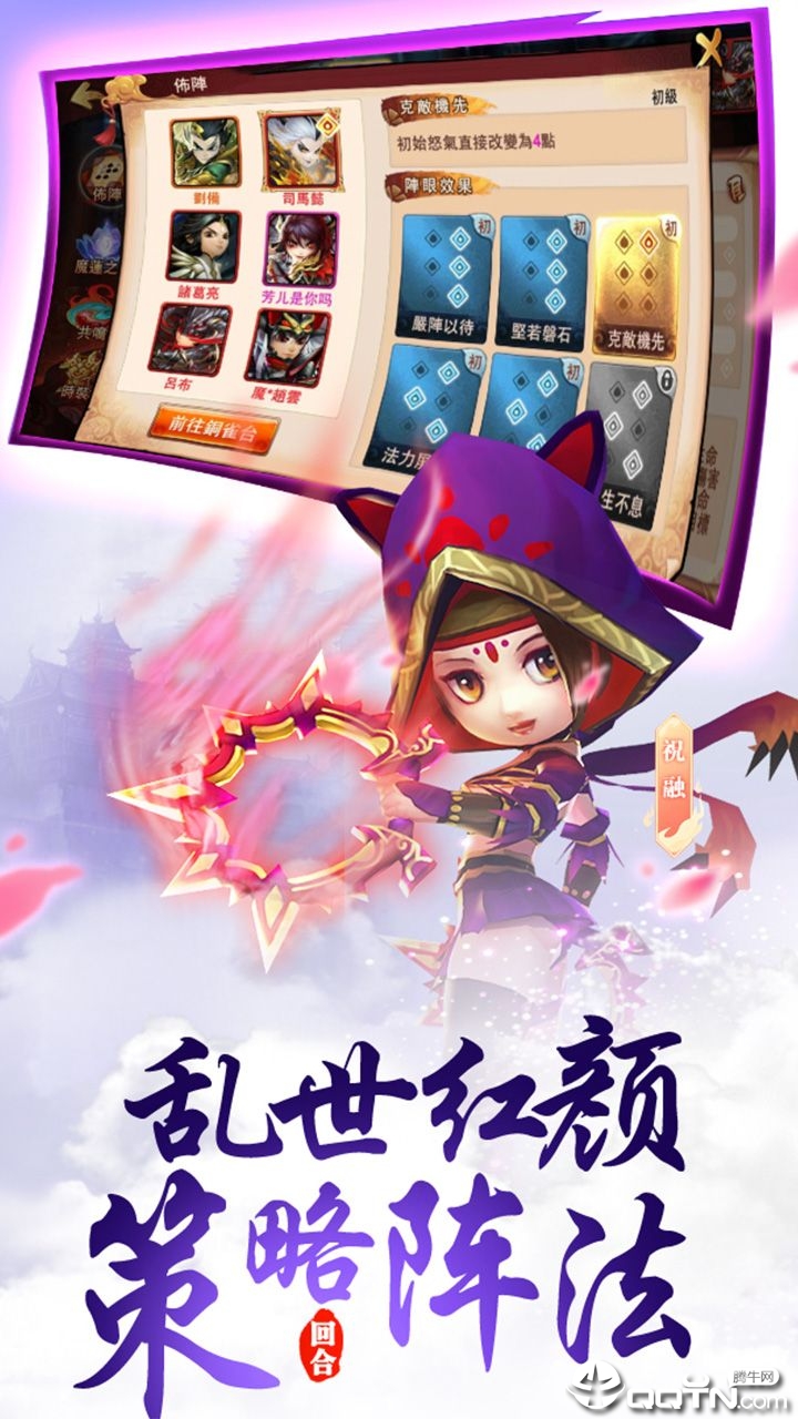 3、与三国名将并肩作战,将策略运用发挥到极致。玩家需要合理搭配武将阵容,充分发挥每位英雄的特长,才能在激烈的竞争中占据优势,最终建立属于自己的强大势力。