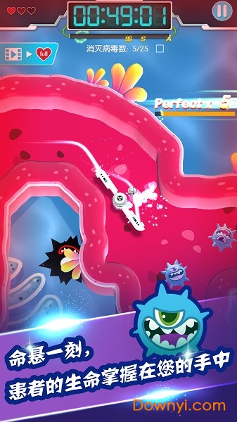 3、创新性的玩法设计让玩家使用纳米级工具精准消灭各类致病菌,同时要避免伤害健康细胞,体验真实医生的责任与压力