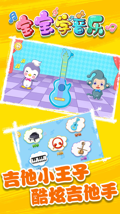 《宝宝学音乐》是一款专为学龄前儿童设计的音乐启蒙教育软件,通过趣味互动的方式带领孩子们探索美妙的音乐世界。游戏中汇集了钢琴、小提琴、吉他等多种常见乐器,配合精心挑选的经典儿歌旋律,让孩子在轻松愉快的氛围中认识乐器外观、感受音色特点。软件采用寓教于乐的设计理念,不仅有活泼的小动物角色陪伴互动,还通过节奏游戏和简单乐谱教学,循序渐进地培养孩子的音乐感知能力,为幼儿音乐启蒙提供专业而有趣的解决方案。