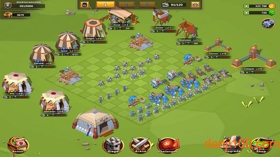 3.丰富的士兵们尽情的搭配选择,排兵布阵策略制敌;超过200种可训练单位涵盖古今中外所有著名兵种,从罗马军团到现代特种部队,合理的兵种相克系统让每场战斗都充满策略深度。