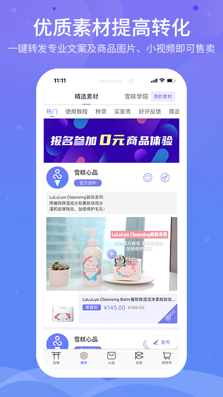 3、浏览精选营销素材库,选择合适内容一键分享给好友或社交平台,扩大商品曝光范围;