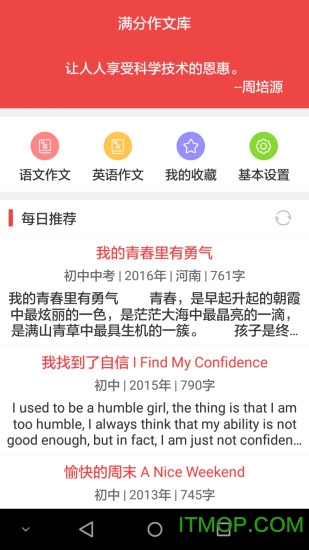 2.中考满分作文专区,精选各地中考语文高分作文,配有详细点评,帮助理解写作要点。