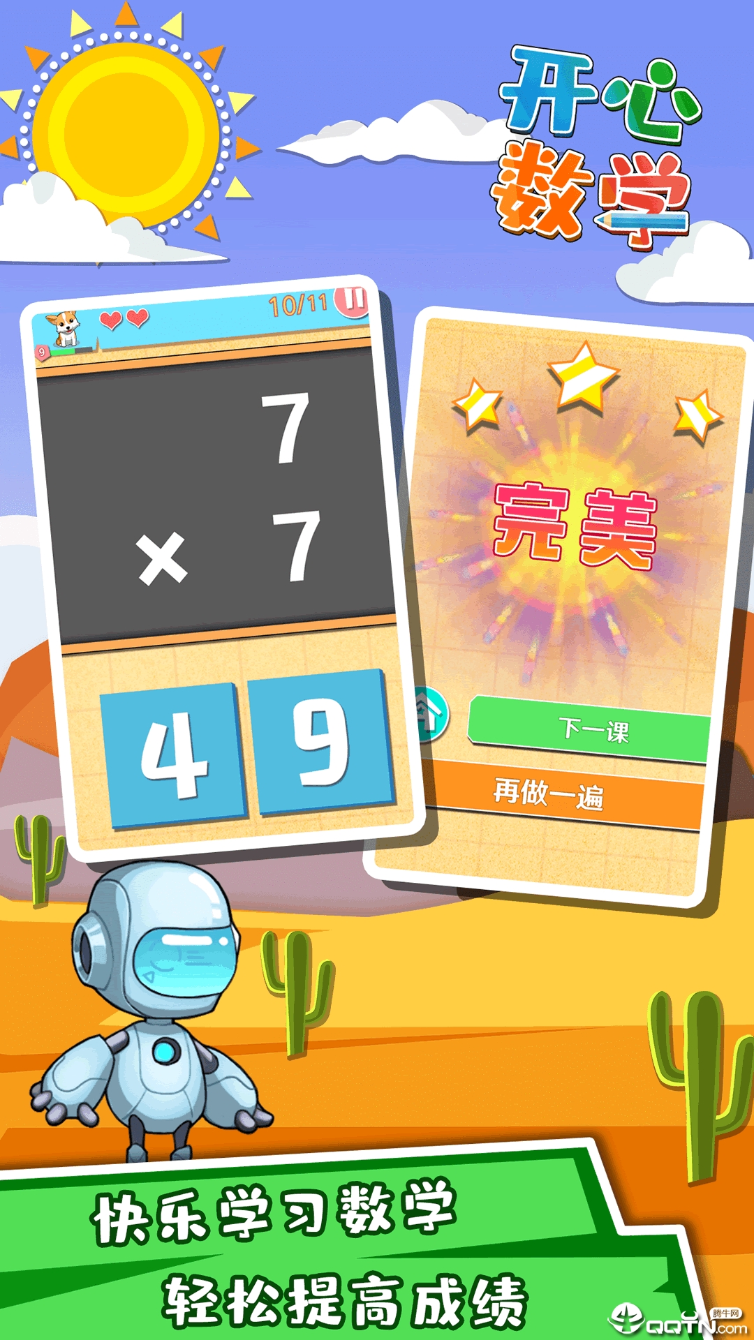 开心数学app是一款专为3-15岁儿童精心打造的数学启蒙学习软件,覆盖从学龄前到高中阶段的数学知识点。通过科学设计的每日十分钟学习计划,帮助孩子循序渐进地掌握数学技能。应用采用符合儿童认知特点的教学方式,将抽象的数学概念转化为直观有趣的互动内容,让各个年龄段的孩子都能找到适合自己的学习内容,在轻松愉快的氛围中提升数学能力。