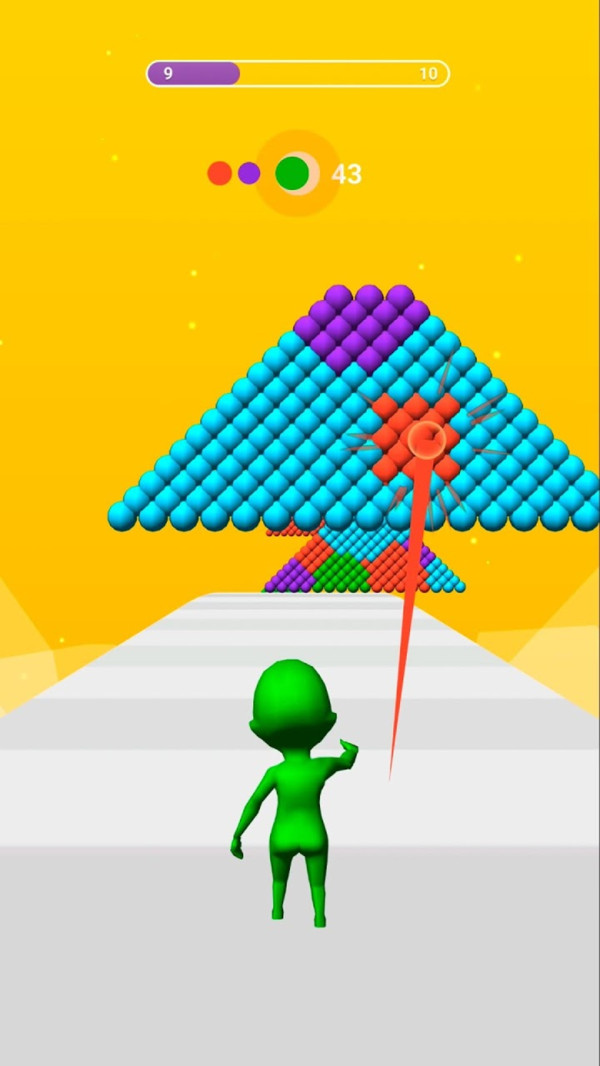 在游戏中,玩家将面临各种颜色墙体的阻挡,这些墙体由不同色彩的小球组成,形成了一道道独特的障碍。通往终点的道路充满挑战,玩家需要仔细观察墙体的颜色分布,并找到与之匹配的投掷球。投弹人类中文版的核心玩法就是通过精准投掷来破坏墙体,地上散落的各色小球就是玩家的武器,只有正确使用它们才能顺利前进。