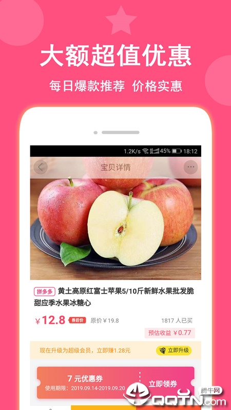 1、优化其他功能,修复已知问题;2、提升优惠券领取成功率;3、改进商品详情页加载速度;4、新增用户反馈渠道;5、优化内存占用,提升运行效率;6、修复部分机型兼容性问题;7、增加新用户引导教程。
