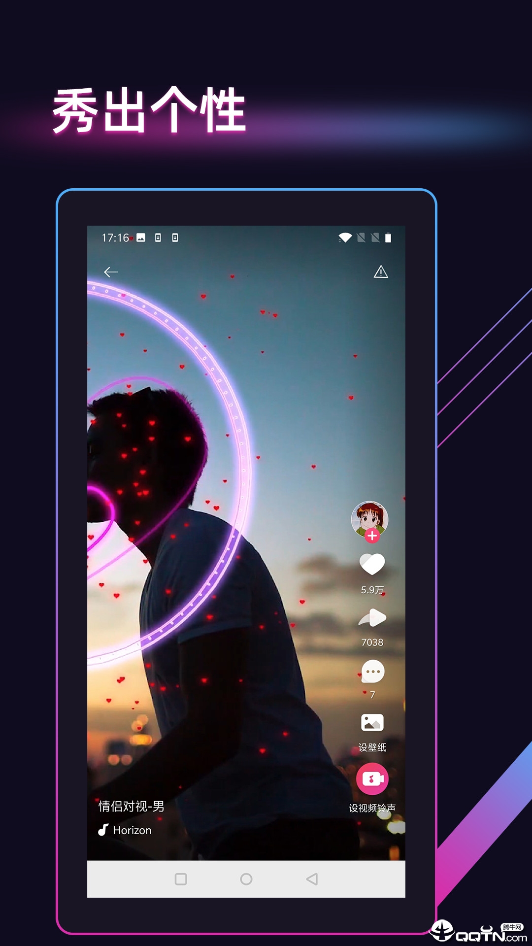 全网热门的都在这里,风景、美女、网红、搞笑、、游戏、萌宠...海量来电视频任你挑选,手机里的视频也可以上传一键设置,就是这么easy。我们特别设置了智能推荐系统,会根据你的使用习惯和偏好,自动推送可能感兴趣的内容。视频资源涵盖4K超清画质,支持横竖屏自适应,无论你的手机型号如何,都能获得完美的全屏展示效果。每周还会推出主题合集,如漫威专场、迪士尼精选等,满足各类用户的个性化需求。
