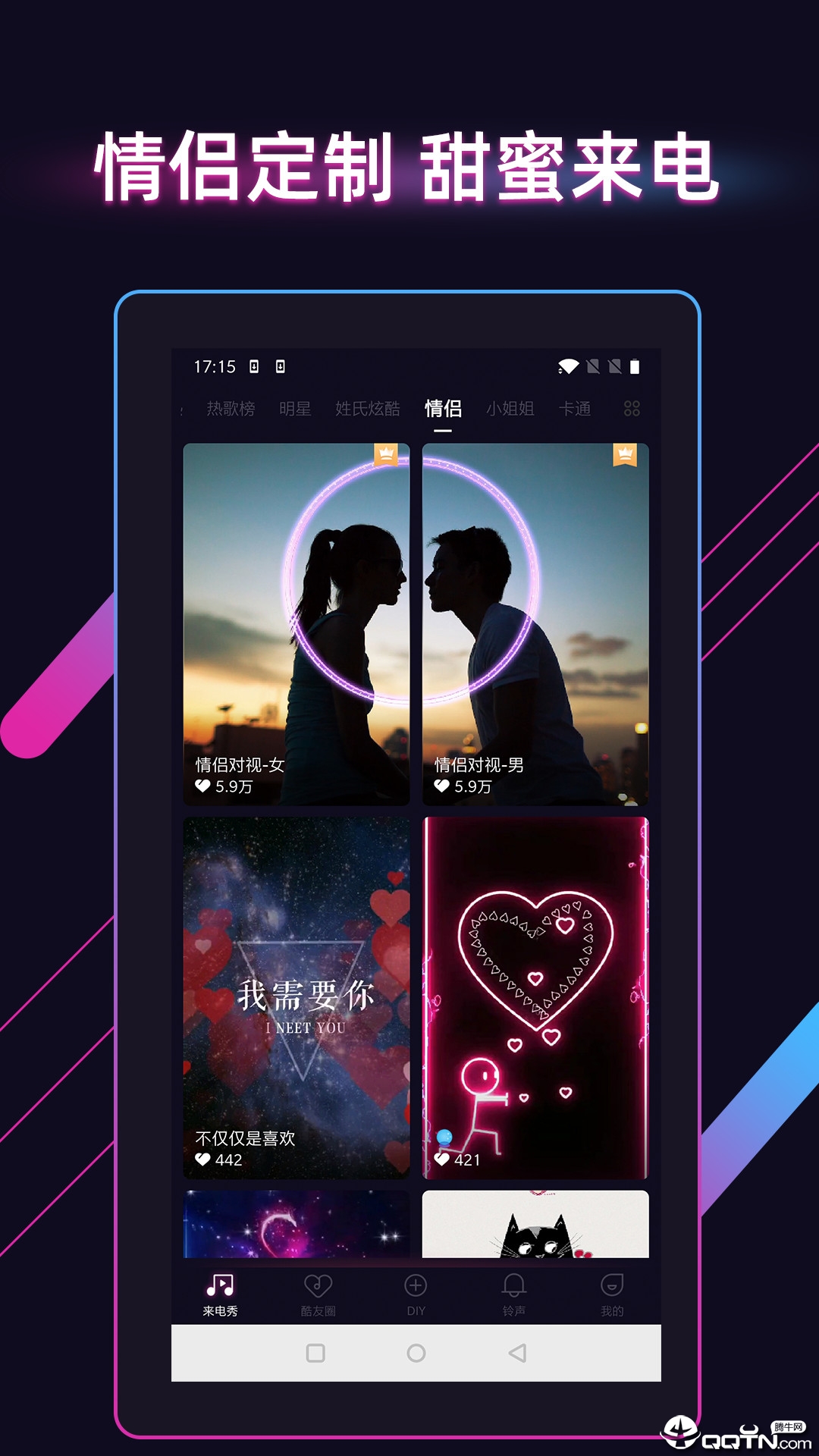 酷音来电秀App是一款专为追求个性与潮流的用户打造的来电美化工具。它不仅提供海量热门铃声和动态壁纸,还汇集了时下最流行的短视频资源,让你的来电界面瞬间与众不同。无论是经典歌曲《芒种》的旋律,还是《野狼disco》的动感节奏,都能在这里找到。更支持本地视频一键上传设置,操作简单快捷,让你轻松秀出自我风格。每天更新丰富内容,从此告别单调来电,开启炫酷视听新体验!