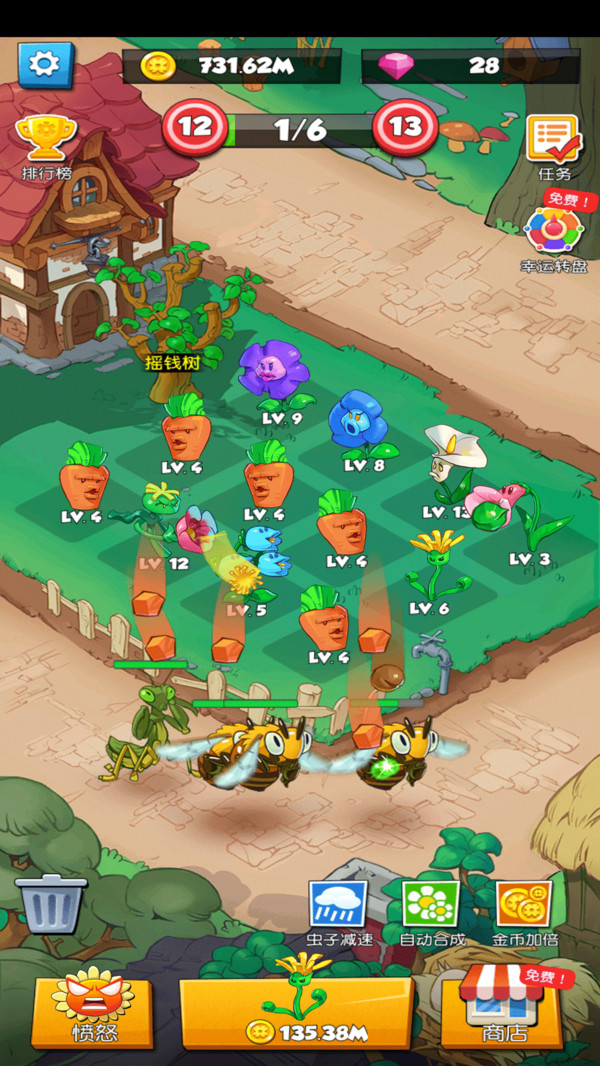 面对强大的害虫入侵时,可以激活怒气系统,让所有花朵在短时间内攻击力翻倍。这个关键时刻的爆发系统为游戏增添了更多策略性,合理使用可以扭转战局,成功抵御害虫的猛烈进攻。