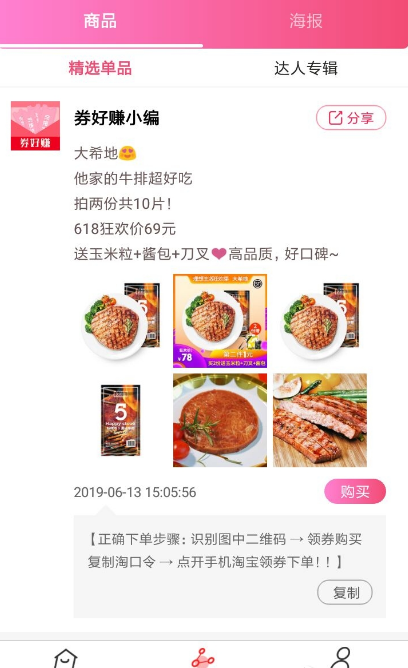 3、用户向好友分享商品可获得返利,分享越多返利越多。创新三级分销体系,邀请好友购物可获1%-15%不等佣金。每月推出爆品高返活动,部分商品返利比例高达30%,轻松实现自购省钱、分享赚钱。