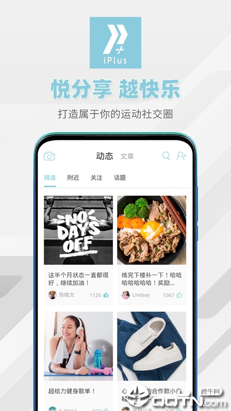 悦分享越快乐:内置社交功能让您可以分享健身成果、交流训练心得,结识志同道合的健身伙伴,让健身之路不再孤单,相互鼓励共同进步。