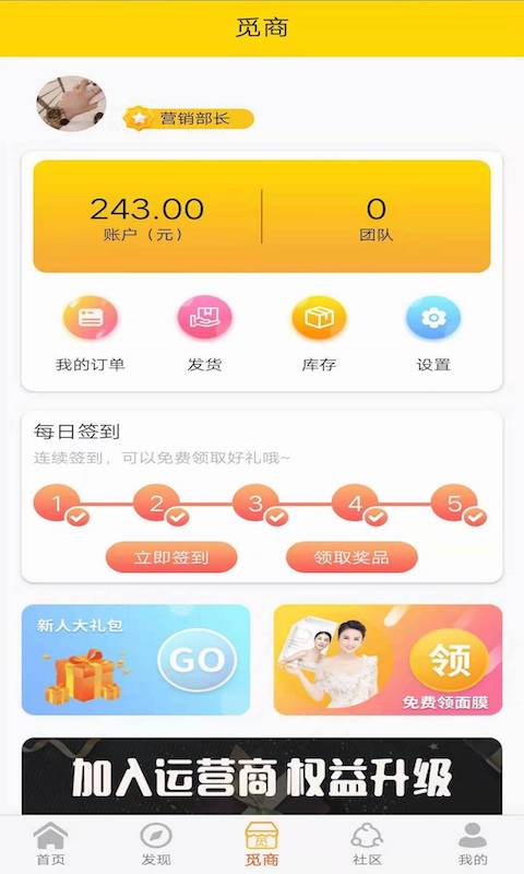 第一块是领券购物省钱导购服务,通过整合全网优惠资源,为用户提供一站式省钱购物解决方案。第二块是公司自营商品业务,提供100-400元不等的精选商品套餐,品质有保障。新用户注册可免费领取面膜一份(仅需支付运费),体验优质产品。平台主要消费群体为公司原有代理商和热爱购物的用户,年龄集中在20-40岁之间,以女性用户为主,职业分布广泛。平台特别注重用户体验,不断优化服务流程,确保每位用户都能享受到愉快的购物体验。