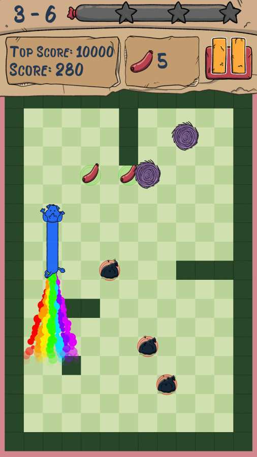 2、我们完全颠覆了经典的经典机制,"长基斯"是一种紧张的香肠狗,长的更长。角色身体会随着游戏进程不断伸长,这个设定带来了全新的操作体验。玩家需要合理规划路线,避免身体打结,同时利用长度优势获取远处道具。动态变化的角色形态让每局游戏都充满新鲜感。