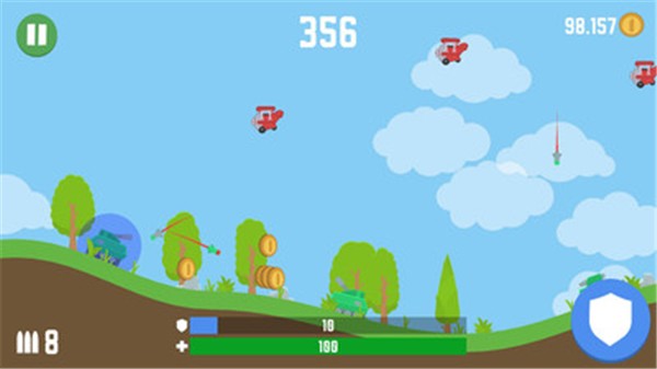 3、游戏中的飞机单位无法被直接攻击,玩家需要灵活走位躲避其攻击,同时集中火力消灭地面坦克目标,只有清除所有敌方坦克才能成功闯关。