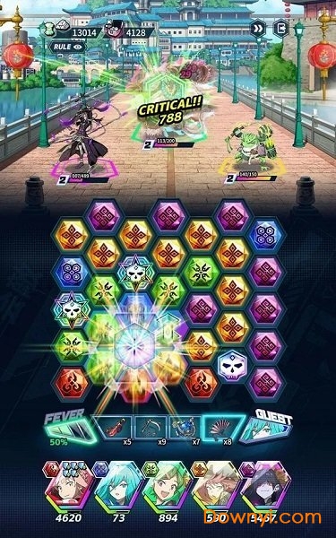 2、战斗系统融合了轻度策略元素,需要根据敌方属性搭配不同元素的辉石组合。独创的"元素共鸣"机制能让相邻消除产生连锁反应,考验玩家的即时决策能力。