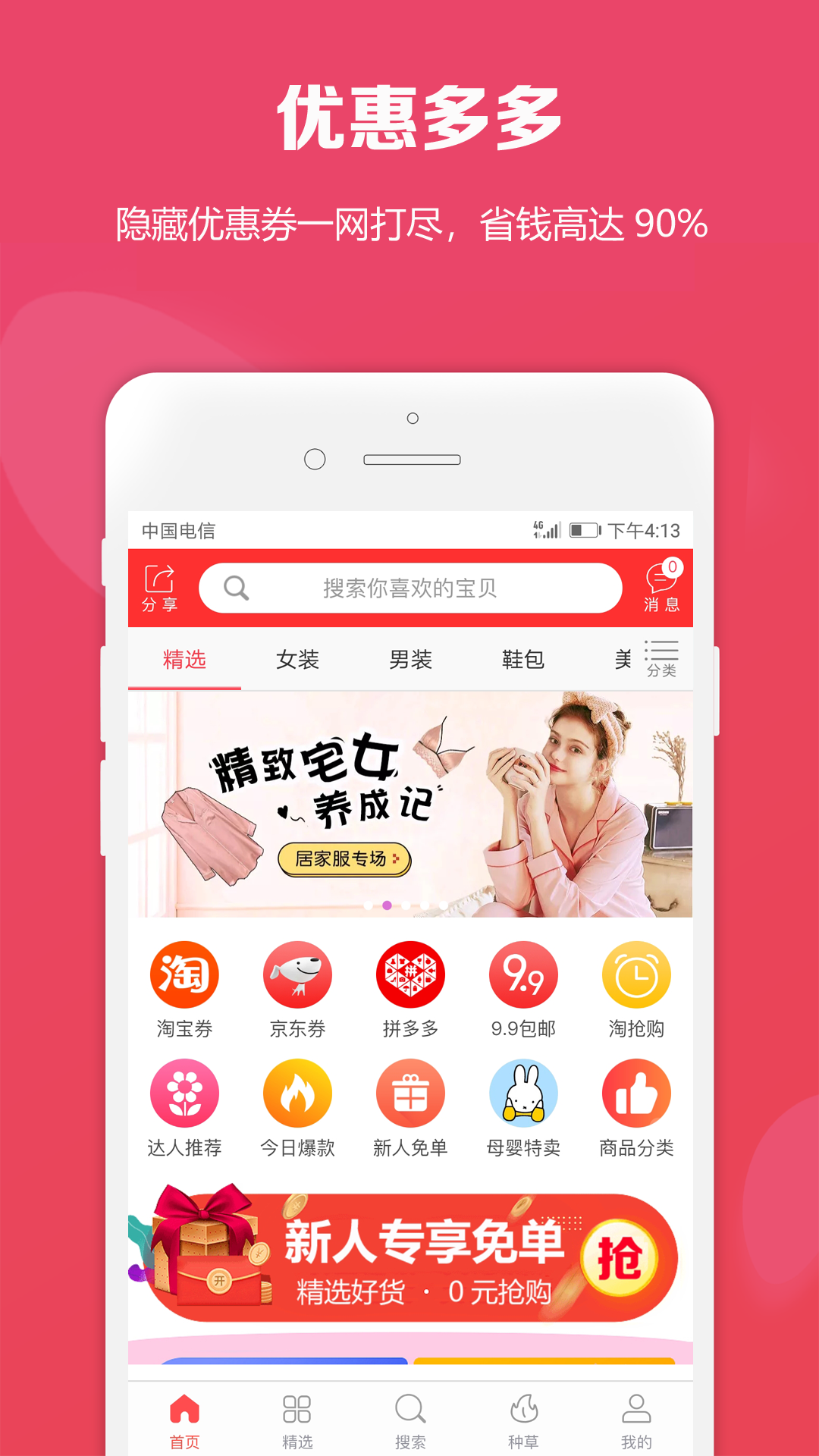 优惠多多:海量隐藏优惠券一网打尽。每日更新超过10万张优惠券,涵盖衣食住行各个品类。特别设置的"限时神券"专区,每小时更新一次超值优惠,手快有手慢无。