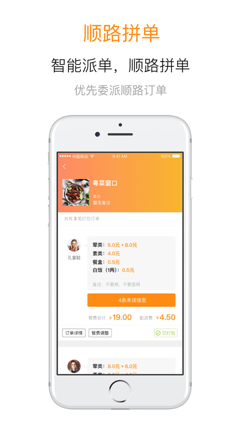 【顺路拼单】 智能派单系统会自动匹配你的行程路线,优先委派顺路订单。通过拼单功能,一次行程可以完成多个订单,大幅提升配送效率,实现收益最大化。